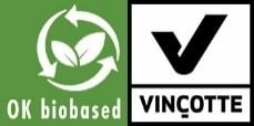 ![]() | OK Biobased The OK Biobased seal is a renewable materials seal from Vincotte which identifies a product’s material as being manufactured from renewable raw materials. Products are graded on a star scale that indicates their percentage of renewable raw materials (% biobased) from one star (20 to 40%) to four-star (more than 80% biobased). |