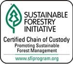 ![]() | Sustainable Forestry Initiative (SFI) Certified The Sustainable Forestry Initiative (SFI) Certified is a globally accepted ecolabel issued by the SFI for forestry industry products and forestry derived products which demonstrates principles of sustainable forestry management, biodiversity protection and wildlife & resource conservation. There are three types of certification: SFI Certified Chain of Custody Label, SFI At Least X% Certified Chain of Custody Label and SFI Certified Sourcing Label. |